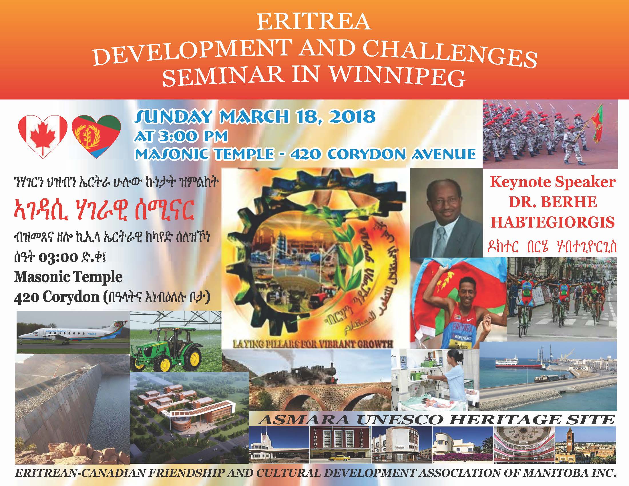 ኣገዳሲ ሃገራዊ ሰሚናር SEMINAR IN WINNIPEG CANADA SUNDAY MARCH 18TH 2018 DR Berhe Habtegiorgis