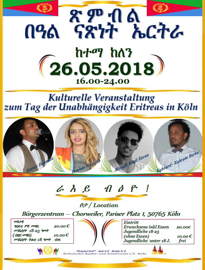 Kulturelle Veranstaltung zum Tag der Unabhaengigkeit Eritreas in Köln - am 26. Mai.2018