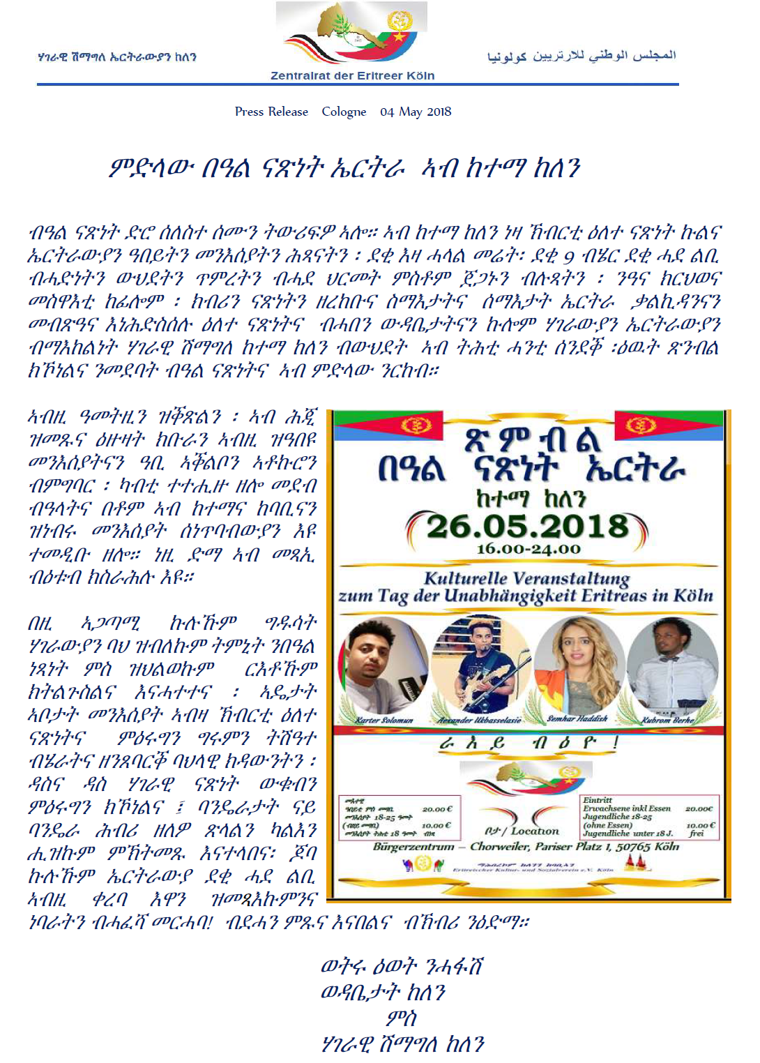 ምድላው በዓል ናጽነት ኤርትራ ኣብ ከተማ ከለን