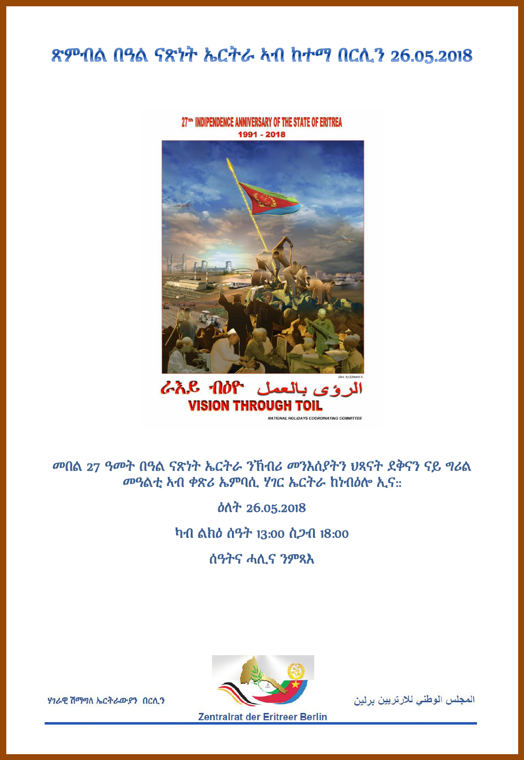 ጽምብል በዓል ናጽነት ኤርትራ ኣብ ከተማ በርሊን 26.05.2018