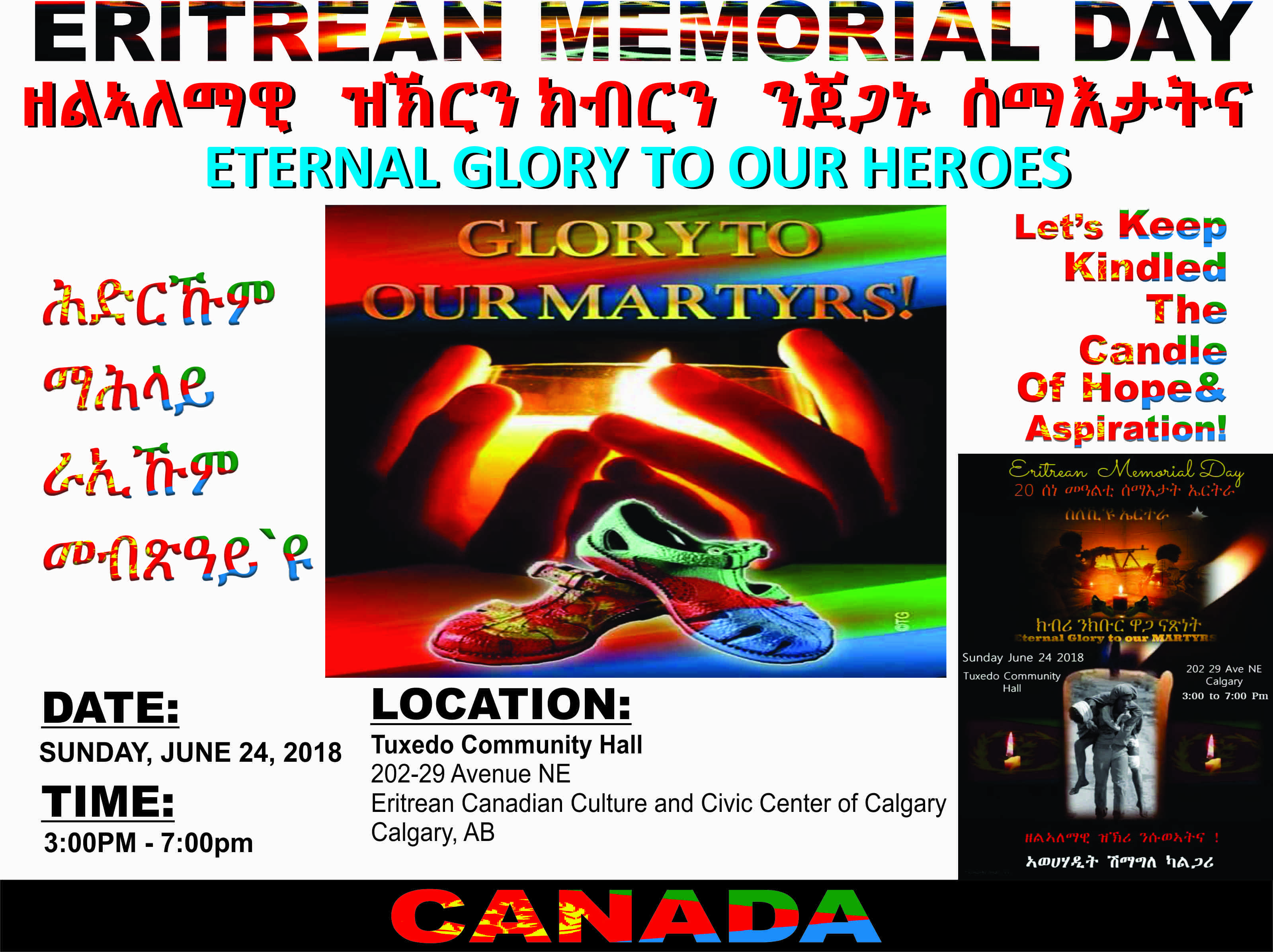 መዓልቲ ስውኣት ERITREAN COMMUNITY IN CALGARY SUNDAY 24TH jUNE 2018 ERITREAN MEMORIAL DAY