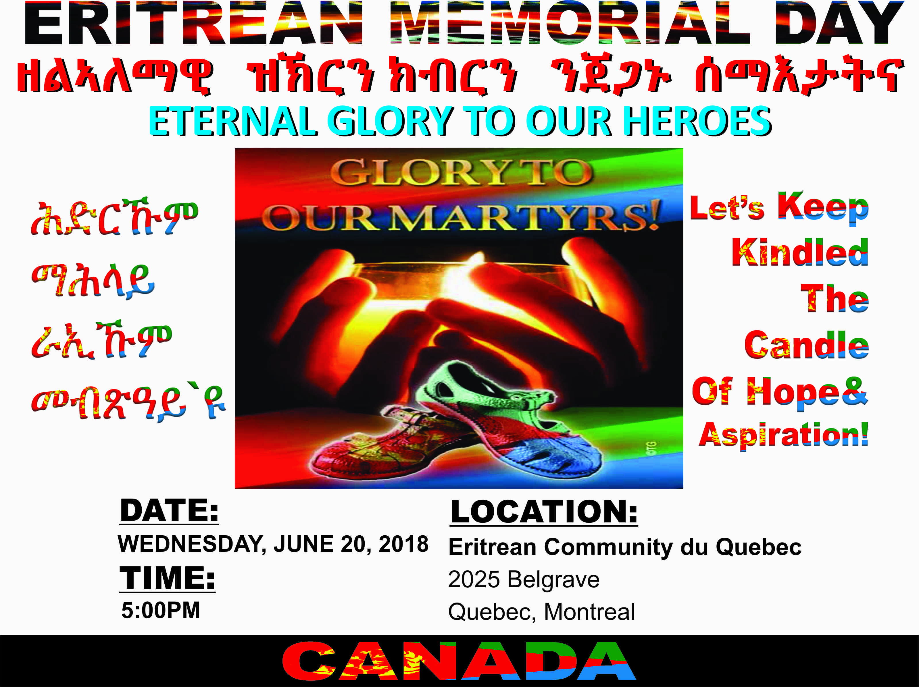 መዓልቲ ስውኣት MEMORIAL DAY ERITREAN COMMUNITY DU MONTREALQUEBEC WEDNESDAY JUNE 20th 2018