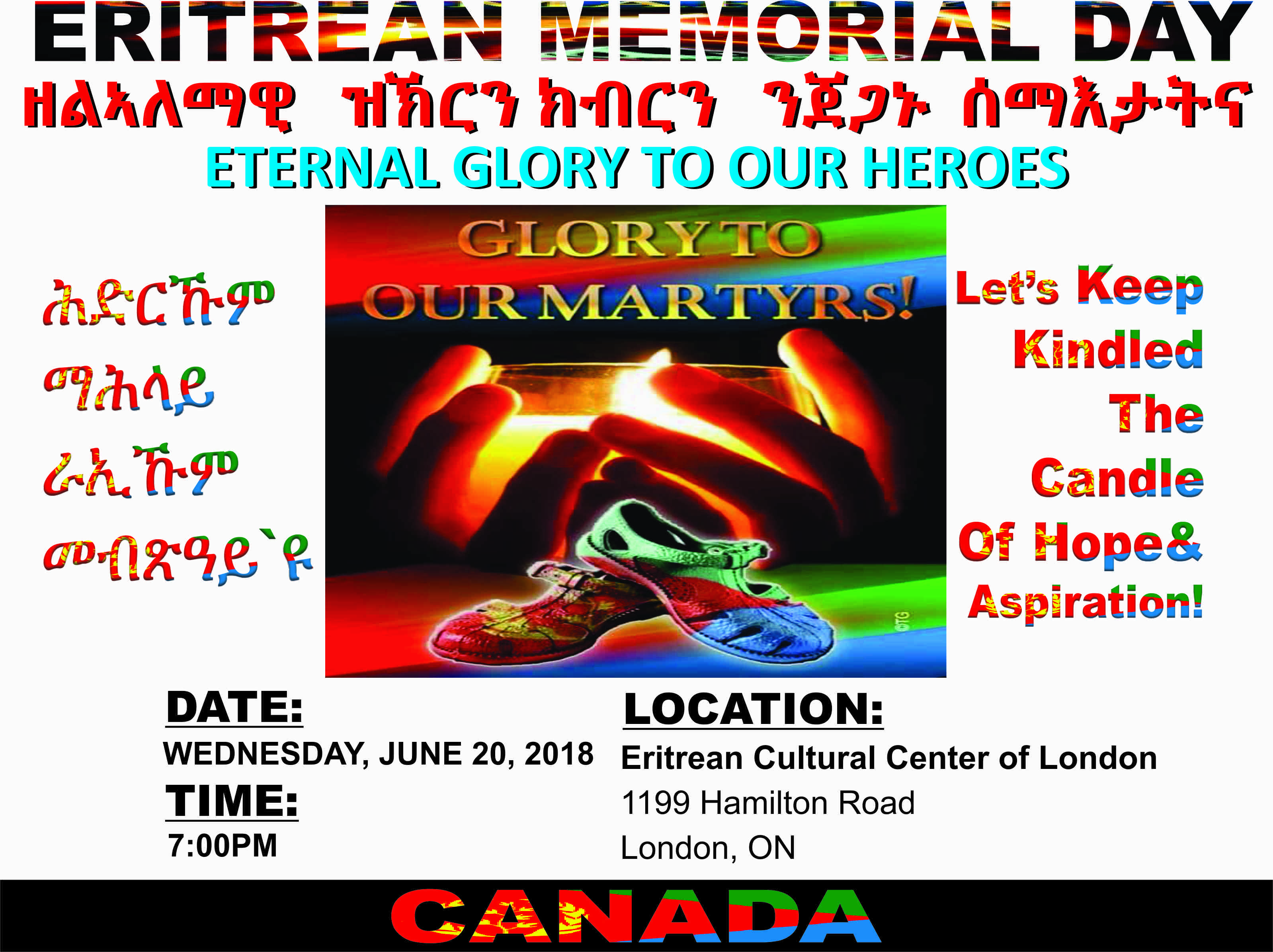 መዓልቲ ስውኣት ERITREAN MEMORIAL DAY : WEDNESDAY JUNE 20TH 2018 ERITREAN CULTURAL CENTER OF LONDON ONTARIO CANADA
