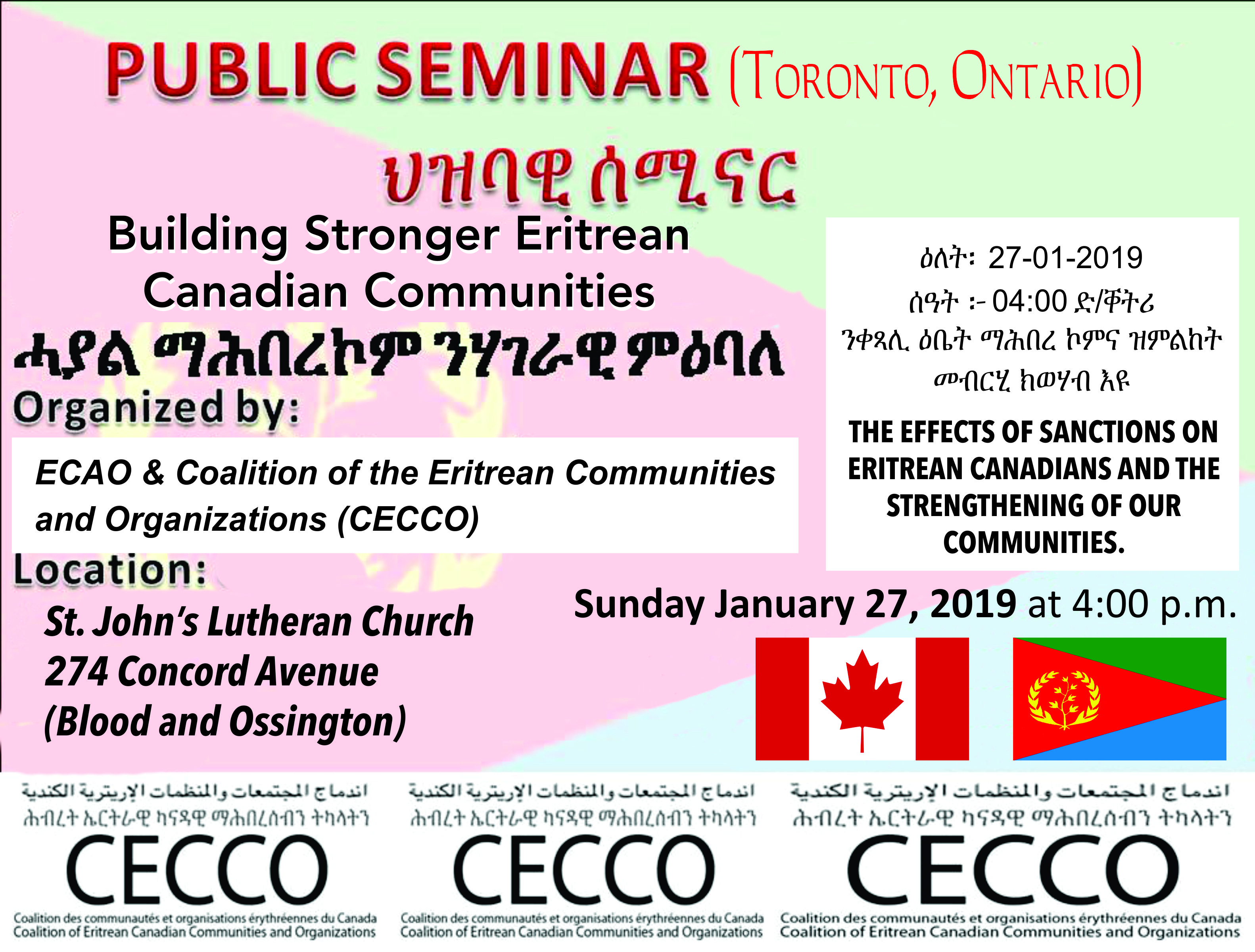 Posted by: CECCO COALITION OF THE ERITREAN CANADIAN COMMUNITIES AND ORGANAIZATIONSDate: Monday, 21 January 2019