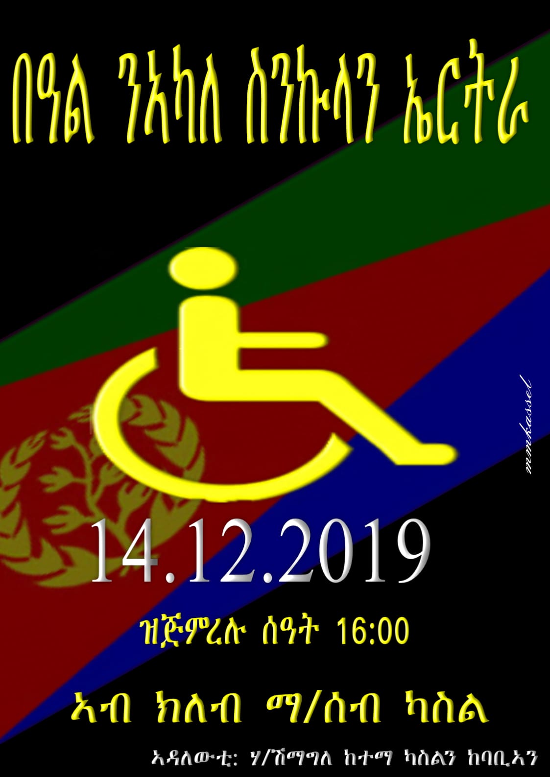 ብዓል ንኣካለ ስንኩላን ኤርትራ ኣብ ከተማ ካስል ( ጀርመን) ንዕለት 14-12-2019 ስዓት 1400