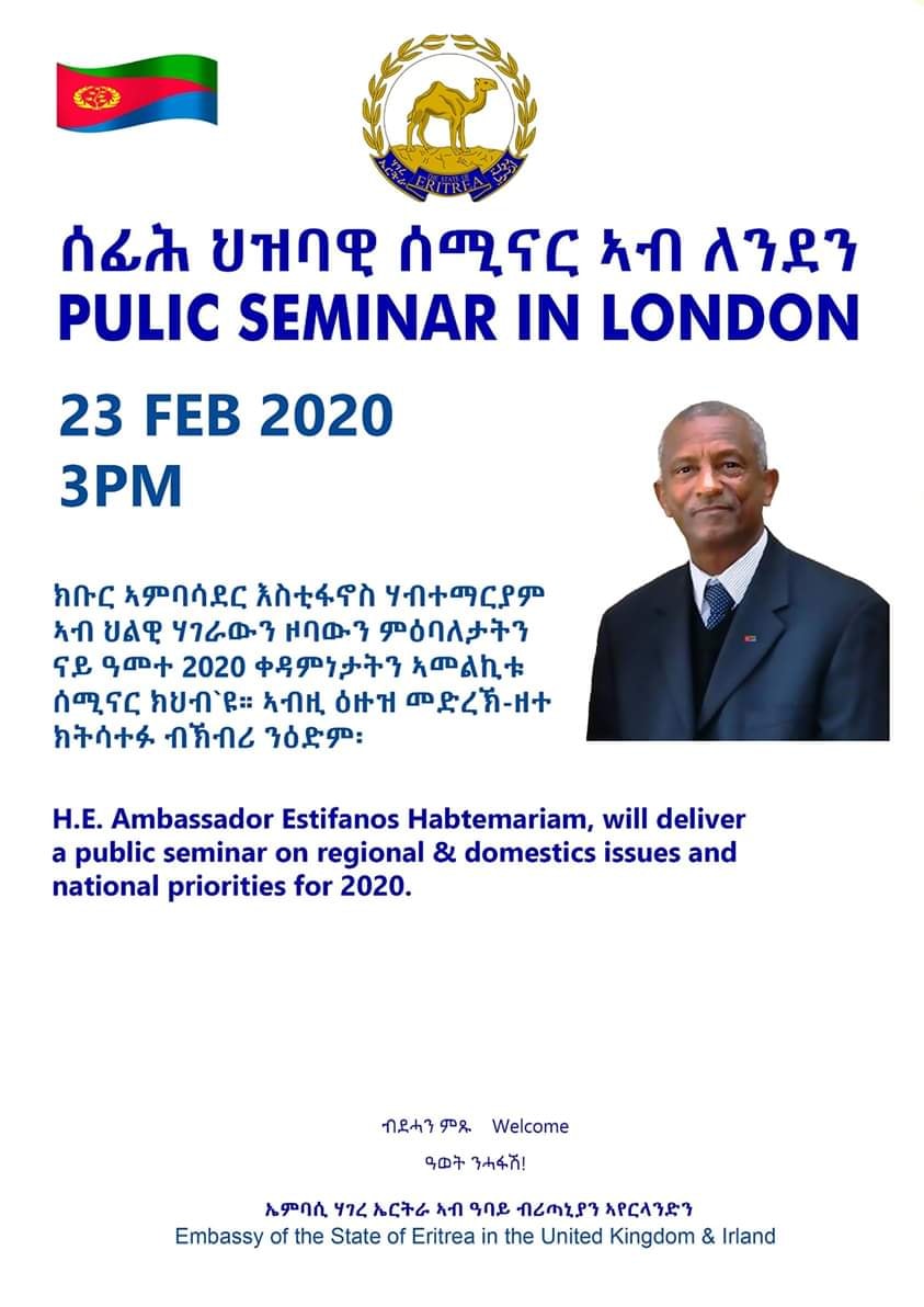 ኣገዳሲ ሰሚናር 23/02/2020 ኣብ ለንደን ዓባይ ብሪጣኒያ