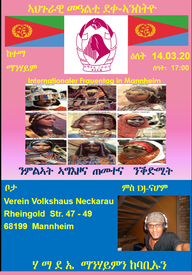 8 መጋቢት - ኣህጉራዊ መዓልቲ ደቀኣንስትዮ - ኣብ ከተማ ማንሃይም * 14-03-2020 * 8 Maerz - Internationaler Frauentag in MANNHEIM (Germany)