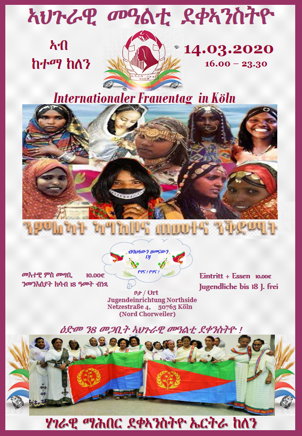 8 መጋቢት - ኣህጉራዊ መዓልቲ ደቀኣንስትዮ - ኣብ ከተማ ከለን * 14-03-2020 * 8 Maerz - Internationaler Frauentag in Cologne/Koeln (Germany)
